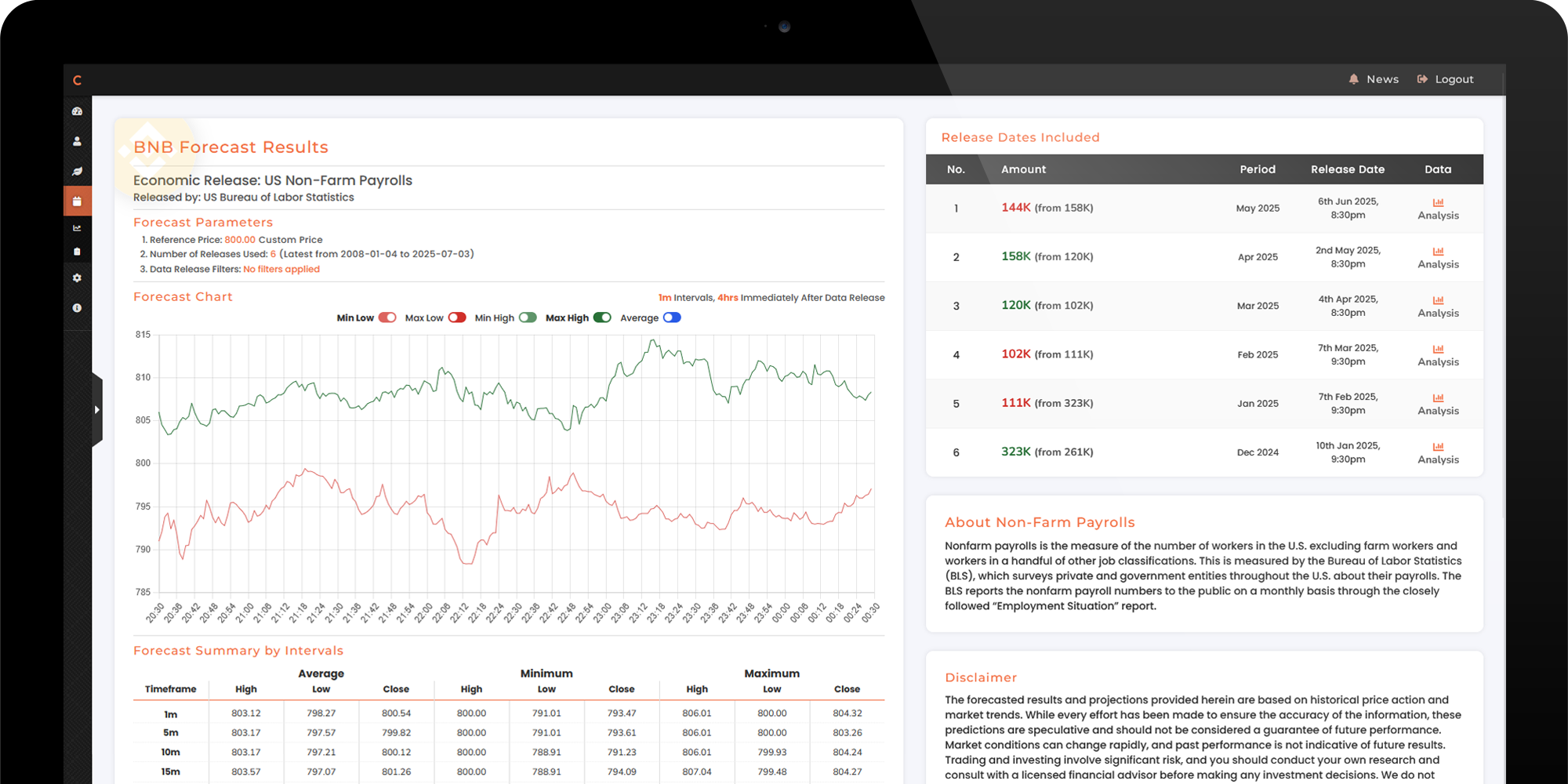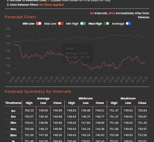 Our charts get data with minute by minute precision, showing you the exact highs and lows to expect after a data release. We pull accurate, live market data and trusted public sources. This means you get precise predictions to guide your trades, right when it matters most.